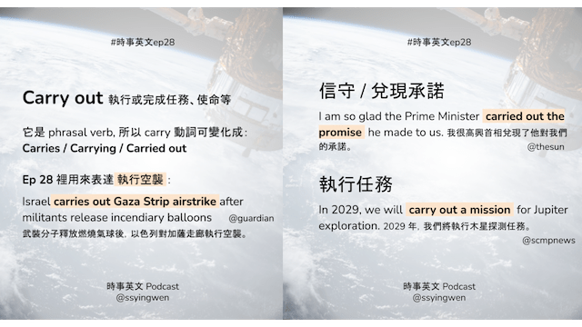 1. Carries out 片語